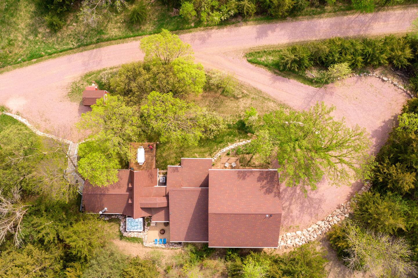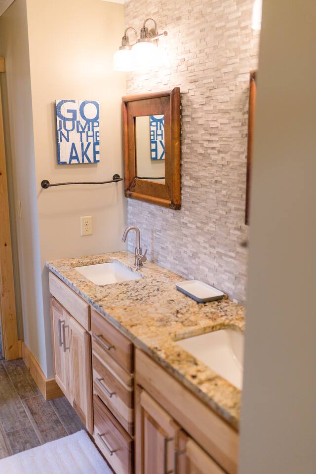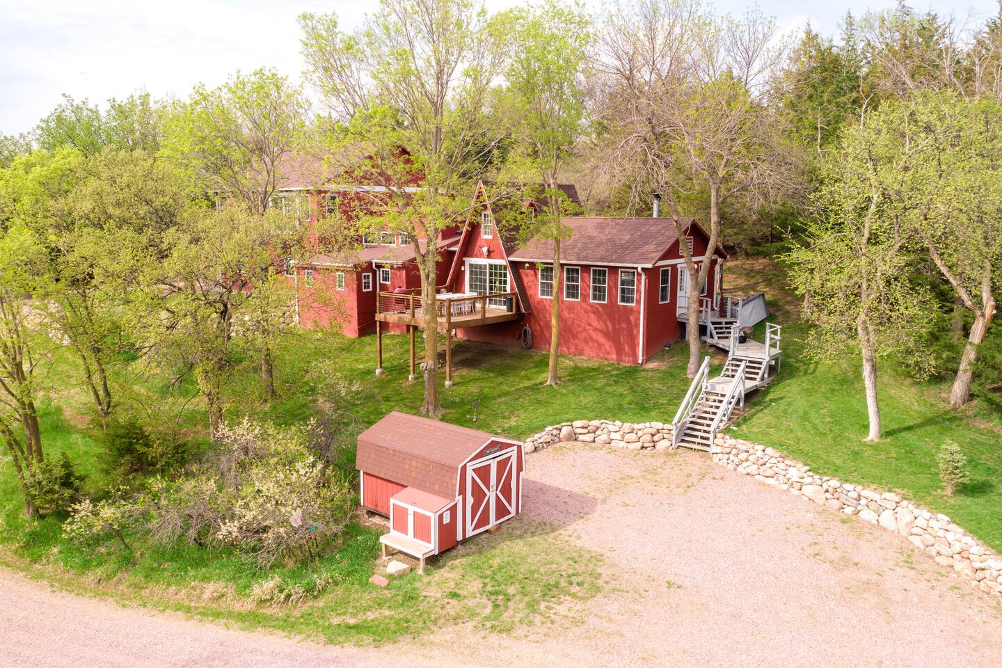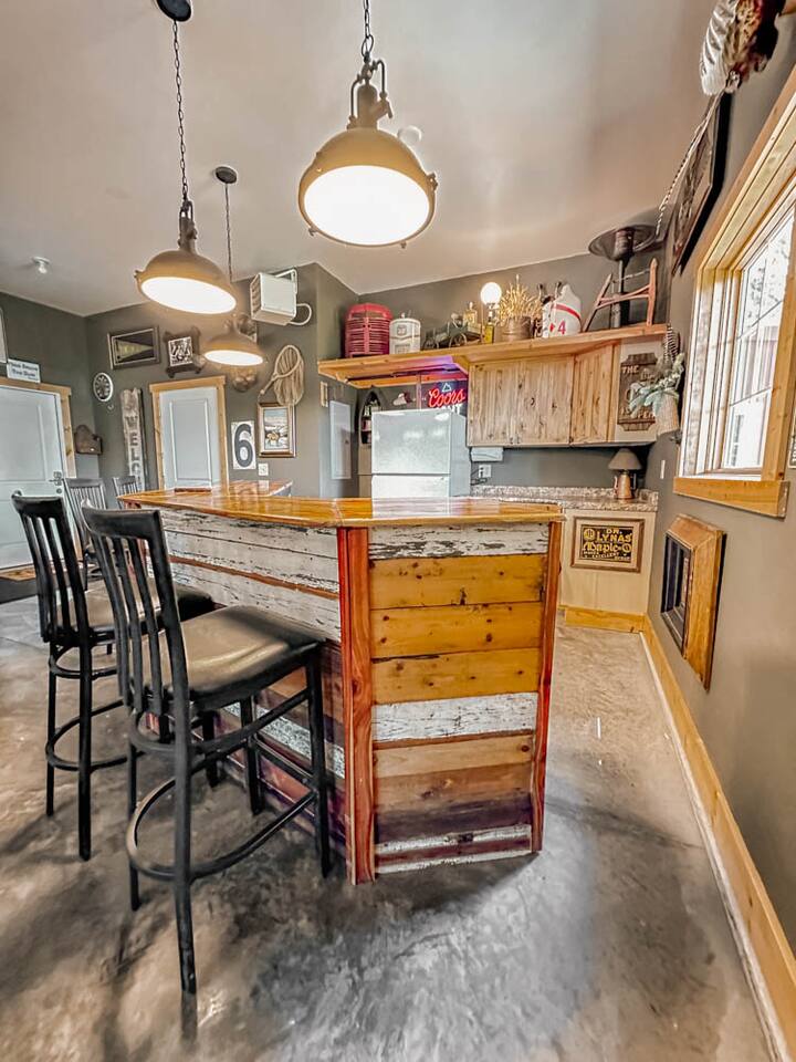 2 large living rooms, one full kitchen, additional kitchen (no cooktop) in the upper addition, 5 private bedrooms with 9 beds & two futons, a game room with a Ping Pong Table, Corn hole and Darts, 2 walk out decks, large hot tub and a ton of locally made artwork and decor! Follow us @cedarridgehideaway for a closer look. KEY FEATURES: ☀Spacious 10 Person Hot tub ☀Propane Fire Pit ☀3 Stall Garage Game Room ☀Ping Pong, Darts, Corn Hole, Ladder Ball and an assortment of games for all ages ☀Fully stocked kitchen with stainless steel appliances, coffee maker, 3 crock pots, toaster, air fryer and mixer ☀Washer & Dryer ☀Kamado Joe Smoker & Gas Grill ☀High-speed WiFi ☀Smart T.V's. ☀One set of bed linens per bed/advertised sleeper ☀Bath & Hot Tub Towels ☀Shampoo, Conditioner and Body Wash "Our whole family gathered in this beautiful space and the amenities were second to none. We loved the spacious living rooms, the beds and the game room. Do not hesitate to book with Ashley- she delivers A+ service. The only trouble is we didn’t want to leave!" - Shelley "This place is amazing! It is HUGE and clean and beautiful. The furnishings are unique and beautiful. Loved the garage-game room! If you’re thinking about this place or another place…. CHOOSE THIS ONE!" - Jinae 📍2 min to Lewis & Clark 📍10 min to Avera Sacred Heart Hospital 📍10 min to Mount Marty University BEDROOMS: Bedroom 1: king bed with en suite bath Bedroom 2: queen bed with futon couch Bedroom 3 upper addition: queen bed with a twin loft connected to jack and Jill bathroom Bedroom 4 upper addition: queen, twin with twin in a loft attached to a jack and Jill bathroom Bedroom 5: (2) queen beds KITCHEN: The kitchen is equipped with everything you could need to cook for everyone in the home; with stainless steel appliances, the cooking essentials, and open access to the rest of the living area, you will be able to entertain here for days! **The kitchen is a part of the original A Frame so the dining table has seating for 6 and the island has 3 stools. GAME ROOM: Just one of the many unique spaces about this cabin is the game room! With a full bar, seating up to 14 and two unique pub tables and a full fridge, you can enjoy playing board games, darts, corn hole or ping pong while watching a game on the large TV. We promise you won't want to leave this converted garage game room! House Rules: - Parties and events are not allowed - No pets - No smoking in the house or garage Our cabin is equipped with Ring cameras (outside only) and smart locks for your peace of mind and security during your stay. Our guests will be provided: An initial supply of: -Toilet paper -Paper towels -Dishwashing, laundry and liquid hand soap -Dishwasher tabs -Trash bags ★☆ Book Today & Let Us Take Care Of You In Yankton! ☆★