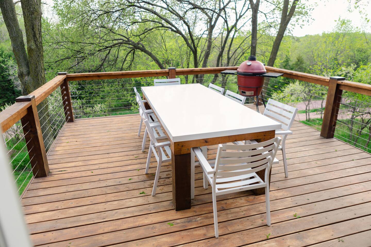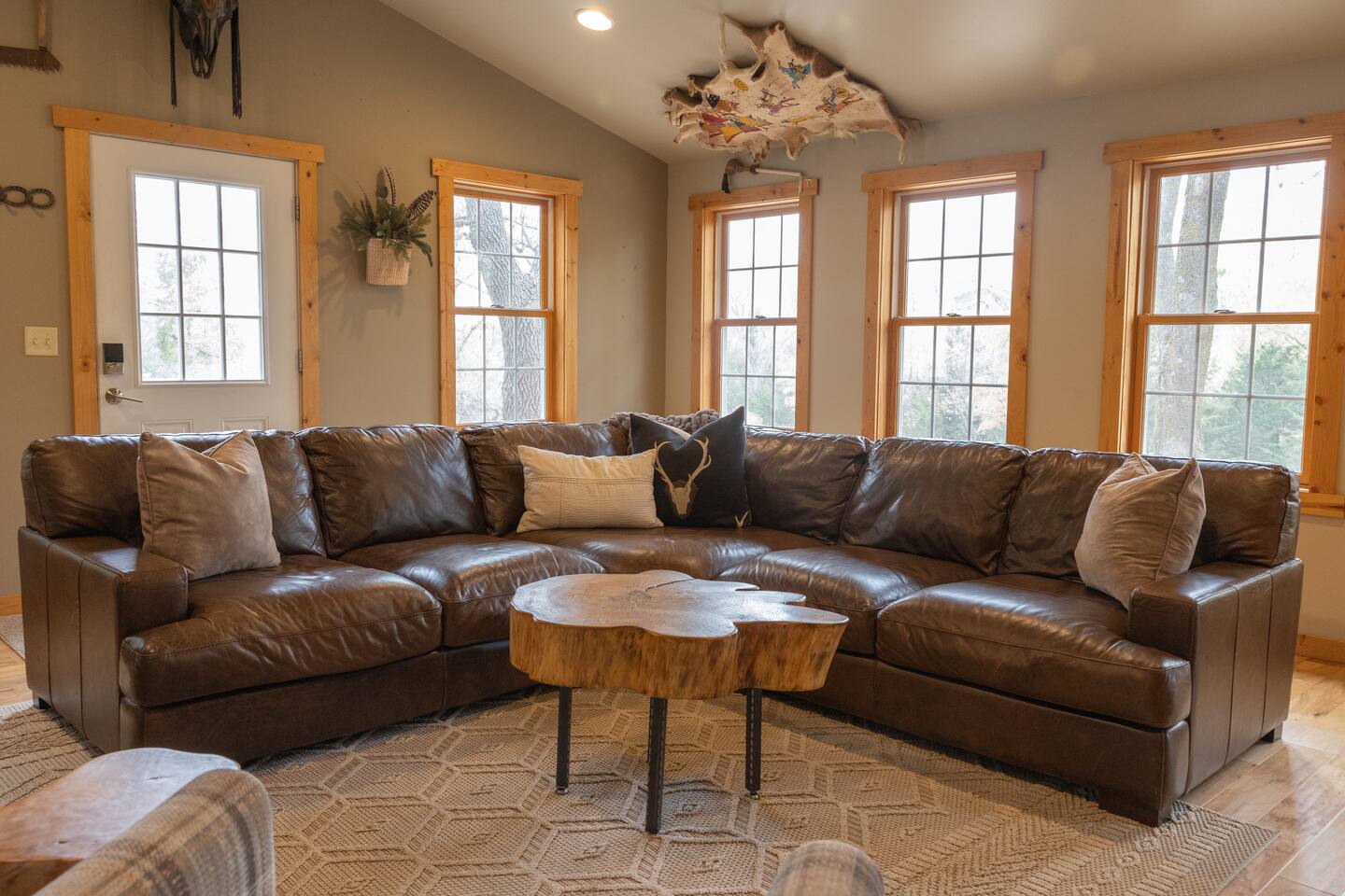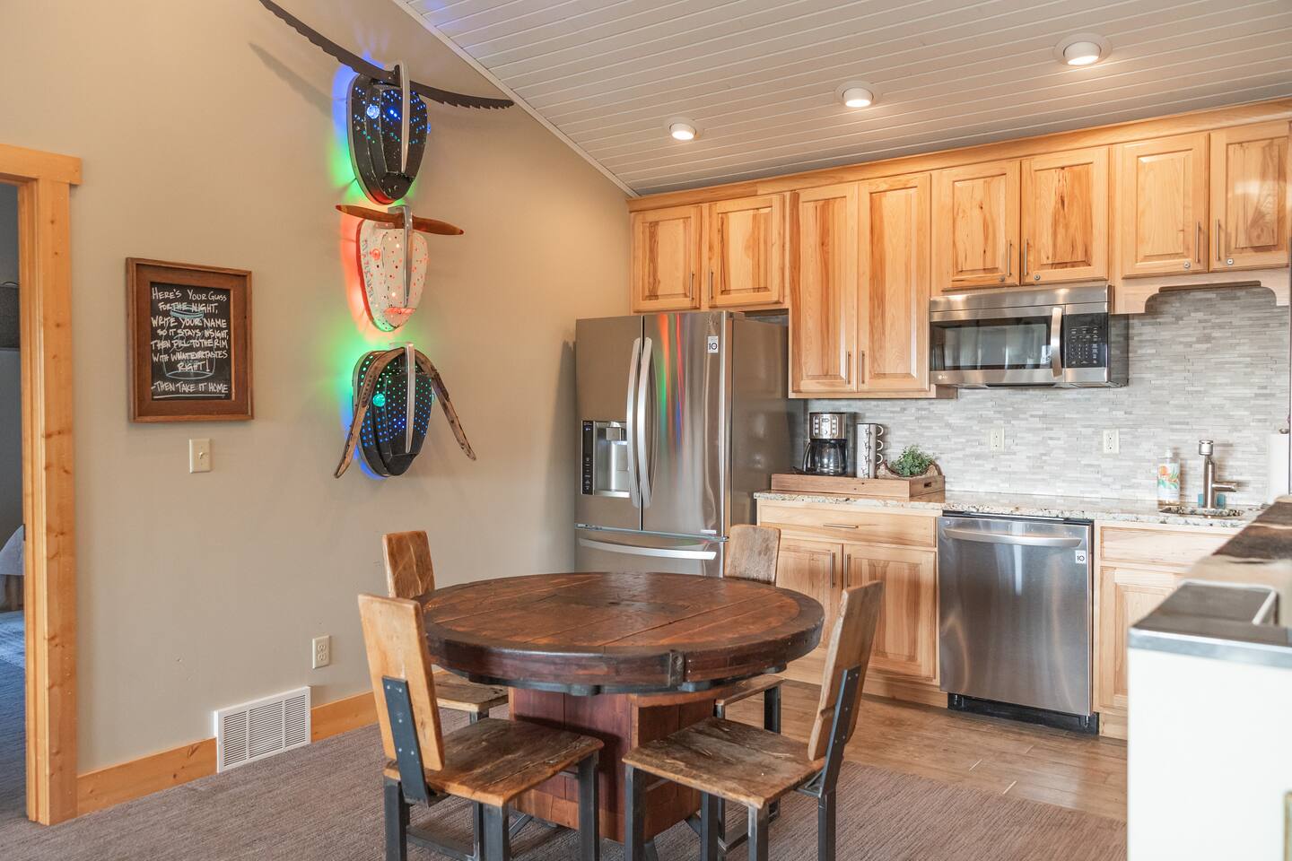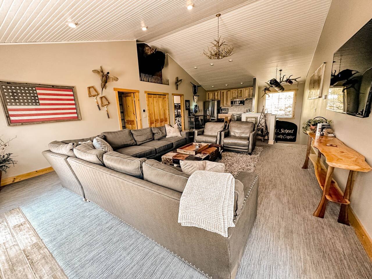 2 large living rooms, one full kitchen, additional kitchen (no cooktop) in the upper addition, 5 private bedrooms with 9 beds & two futons, a game room with a Ping Pong Table, Corn hole and Darts, 2 walk out decks, large hot tub and a ton of locally made artwork and decor! Follow us @cedarridgehideaway for a closer look. KEY FEATURES: ☀Spacious 10 Person Hot tub ☀Propane Fire Pit ☀3 Stall Garage Game Room ☀Ping Pong, Darts, Corn Hole, Ladder Ball and an assortment of games for all ages ☀Fully stocked kitchen with stainless steel appliances, coffee maker, 3 crock pots, toaster, air fryer and mixer ☀Washer & Dryer ☀Kamado Joe Smoker & Gas Grill ☀High-speed WiFi ☀Smart T.V's. ☀One set of bed linens per bed/advertised sleeper ☀Bath & Hot Tub Towels ☀Shampoo, Conditioner and Body Wash "Our whole family gathered in this beautiful space and the amenities were second to none. We loved the spacious living rooms, the beds and the game room. Do not hesitate to book with Ashley- she delivers A+ service. The only trouble is we didn’t want to leave!" - Shelley "This place is amazing! It is HUGE and clean and beautiful. The furnishings are unique and beautiful. Loved the garage-game room! If you’re thinking about this place or another place…. CHOOSE THIS ONE!" - Jinae 📍2 min to Lewis & Clark 📍10 min to Avera Sacred Heart Hospital 📍10 min to Mount Marty University BEDROOMS: Bedroom 1: king bed with en suite bath Bedroom 2: queen bed with futon couch Bedroom 3 upper addition: queen bed with a twin loft connected to jack and Jill bathroom Bedroom 4 upper addition: queen, twin with twin in a loft attached to a jack and Jill bathroom Bedroom 5: (2) queen beds KITCHEN: The kitchen is equipped with everything you could need to cook for everyone in the home; with stainless steel appliances, the cooking essentials, and open access to the rest of the living area, you will be able to entertain here for days! **The kitchen is a part of the original A Frame so the dining table has seating for 6 and the island has 3 stools. GAME ROOM: Just one of the many unique spaces about this cabin is the game room! With a full bar, seating up to 14 and two unique pub tables and a full fridge, you can enjoy playing board games, darts, corn hole or ping pong while watching a game on the large TV. We promise you won't want to leave this converted garage game room! House Rules: - Parties and events are not allowed - No pets - No smoking in the house or garage Our cabin is equipped with Ring cameras (outside only) and smart locks for your peace of mind and security during your stay. Our guests will be provided: An initial supply of: -Toilet paper -Paper towels -Dishwashing, laundry and liquid hand soap -Dishwasher tabs -Trash bags ★☆ Book Today & Let Us Take Care Of You In Yankton! ☆★