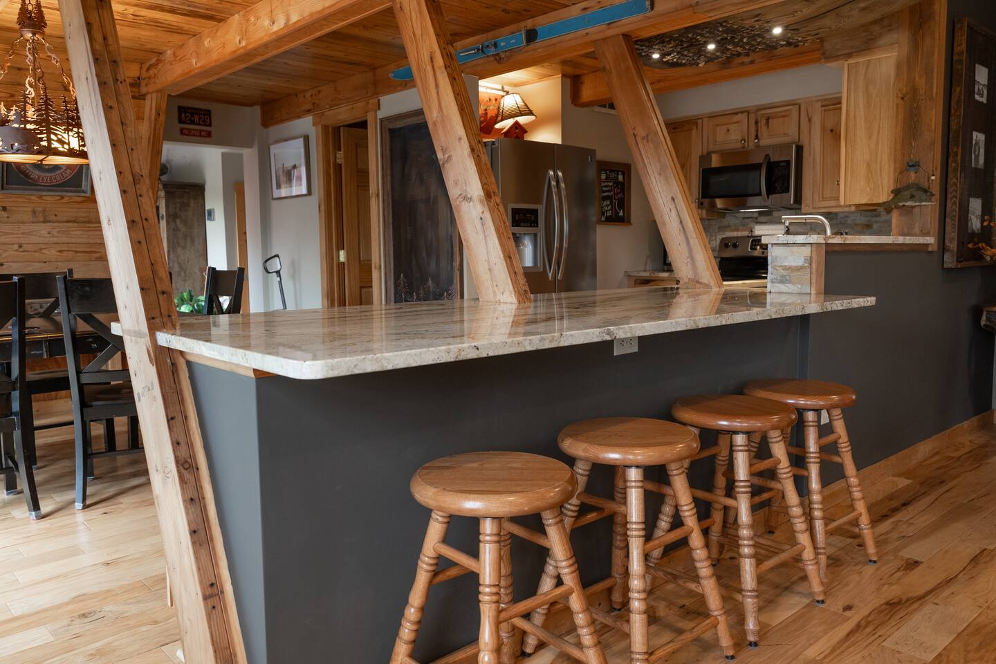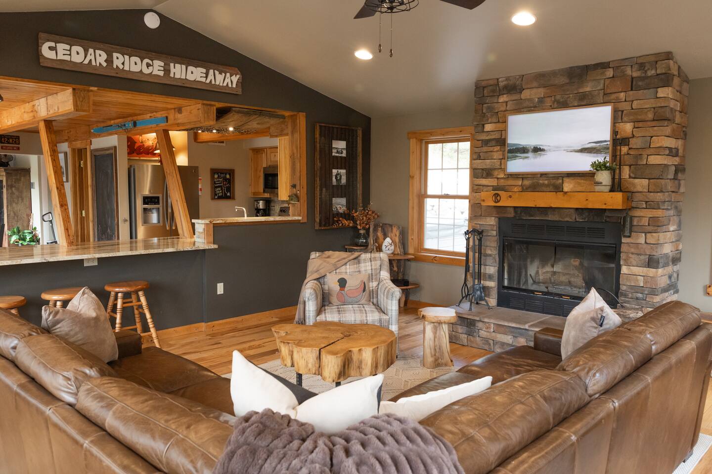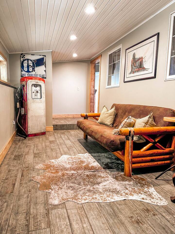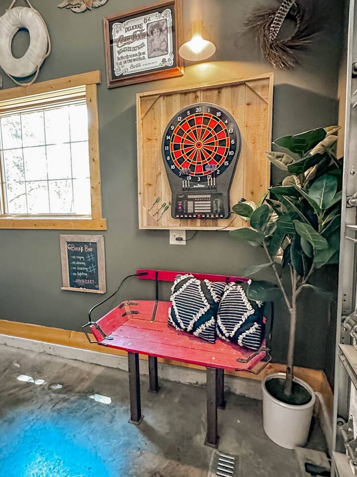 Nestled in the wooded hills teeming with wildlife, Cedar Ridge is designed for guests who appreciate originality and crave a truly unique experience. Our cozy cabin has luxurious amenities and creative spaces full of nostalgic vintage vibes. With 3,200 sq. ft. on 1.8 acres, this is the perfect retreat for rest, play, and memory-making. Whether you’re unwinding in the hot tub, gathering by the fire pit, or hanging in the game room, you’ll find every detail crafted for entertainment & relaxation.